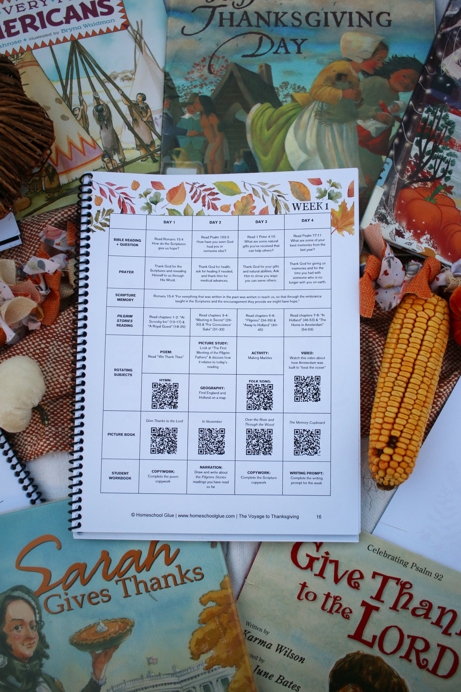 Spend the 4 weeks leading up to Thanksgiving learning early American history through living books, Bible studies, a hymn, a folk song, art, poetry, activities, and more with The Voyage to Thanksgiving!