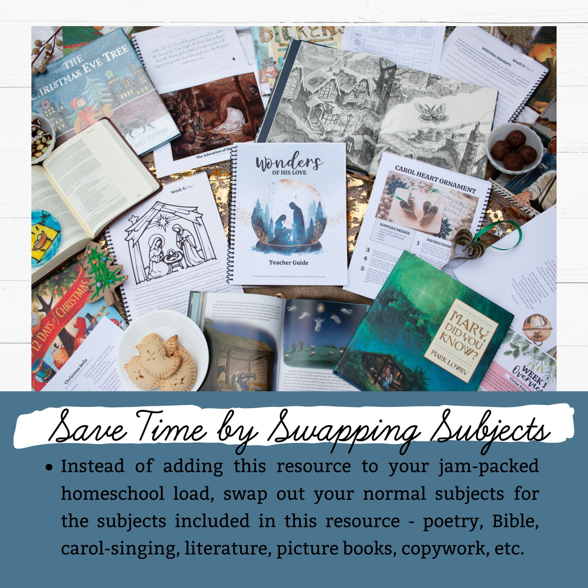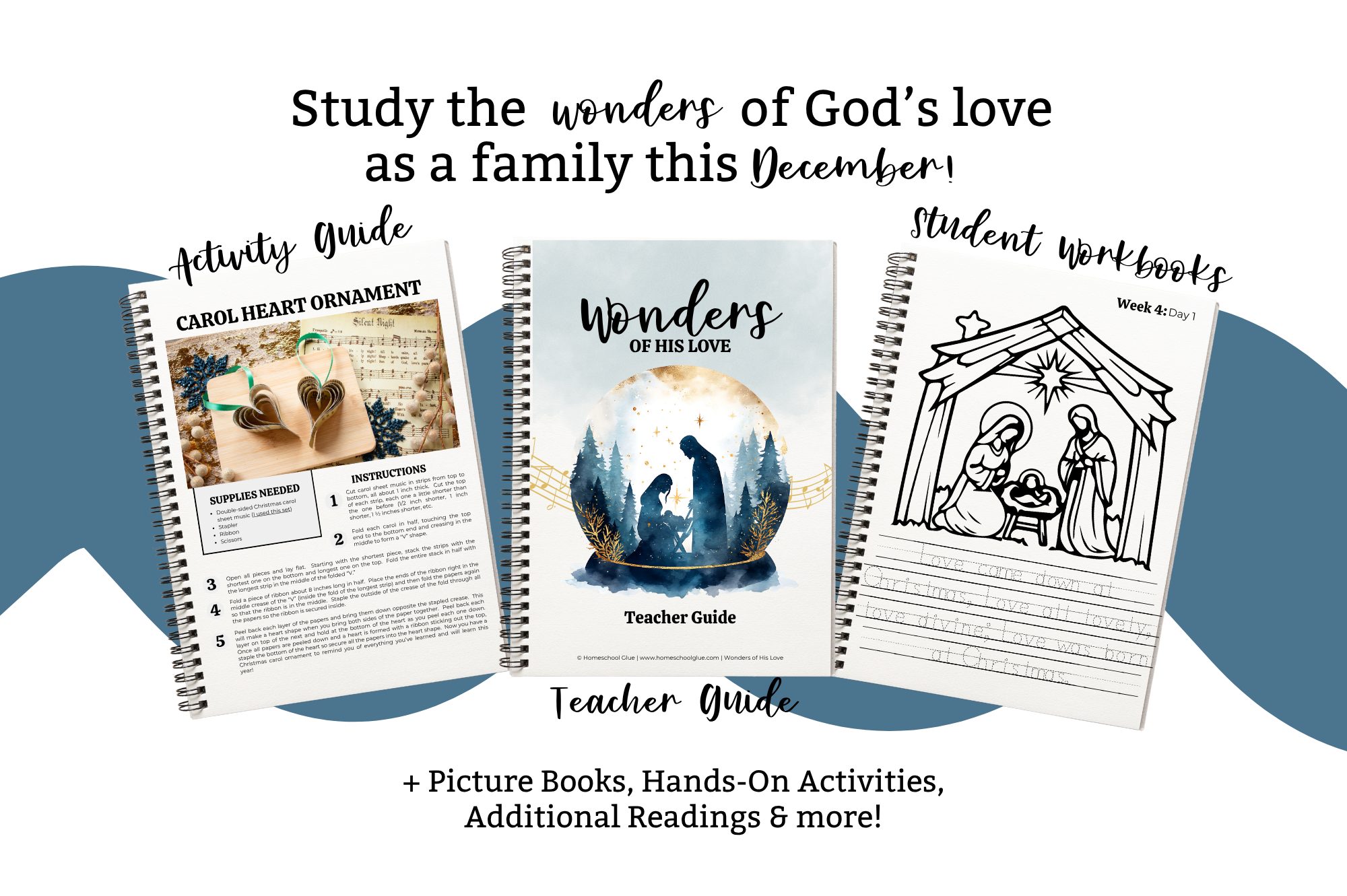 Wonders of His Love is a family-style, open-and-go Charlotte Mason-inspired 4-week-long curriculum that helps your entire family (preschool through high school + beyond - parents will learn a lot too) focus on the true meaning of Christmas through multiple subjects. So, you can have the fun of Christmas while always pointing everything back to Jesus!